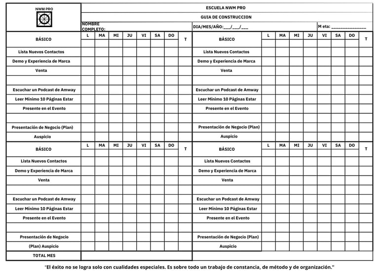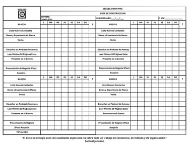 De acuerdo con lo escrito, te recomiendo elaborar un plan de trabajo de 90 días enfocado en los tres puntos explicados en este artículo: Ventas, Capacitación y Expansión. La palabra clave aquí será constancia. Para ello, te compartiré una guía de construcción que te permitirá medir tu progreso en cada uno de estos aspectos de manera diaria, semanal y mensual.