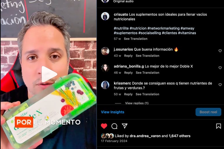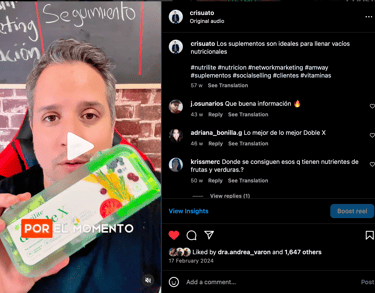 Por ejemplo, en vez de publicar: "Nutrilite Double X tiene 12 vitaminas, 10 minerales y 22 fitonutrientes." Va a funcionar: "Yo no era de los que tomaban suplementos. Pero desde que uso este, noto que mi energía no se cae y siento una mayor vitalidad en mi dia."